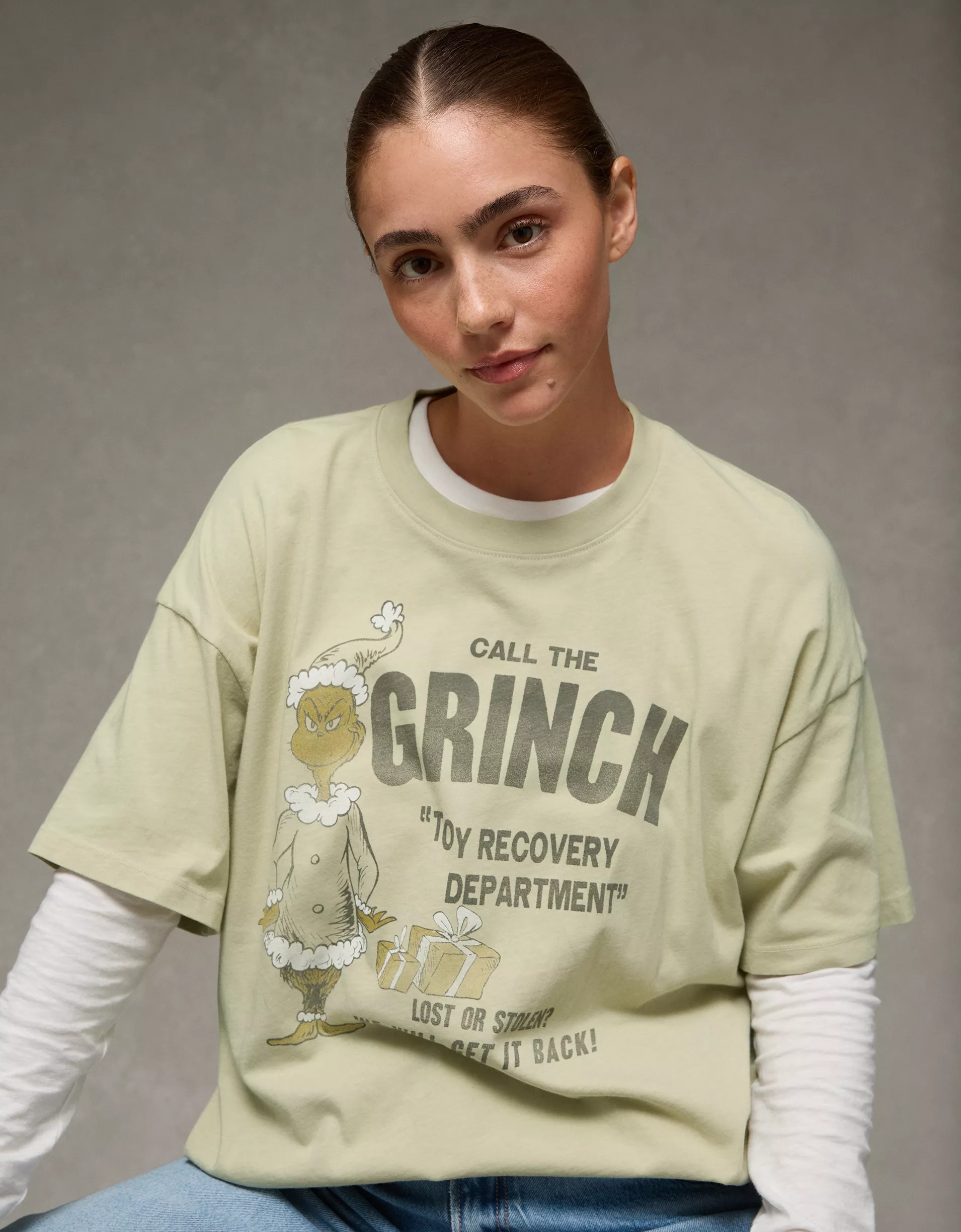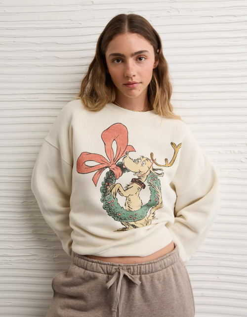 Combina las piezas como quieras, úsalas donde sea y encuentra la colección exclusiva de Grinch x American Eagle en tiendas físicas y en línea.